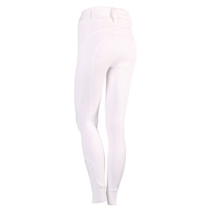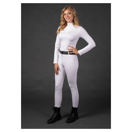 Reithose mit hohem Bund, zwei Seitentaschen mit silberfarbenem EQS-Aufdruck, rundgenähtem Gesäß mit Silikonaufdruck für zusätzlichen Halt im Sattel und elastischem Einsatz um die Knöchel für mehr Komfort in Ihren Reitstiefeln.