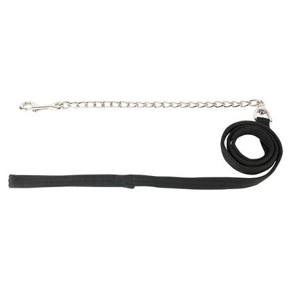 Flacher, weicher Führstrick mit silberfarbener Kette und Karabiner.