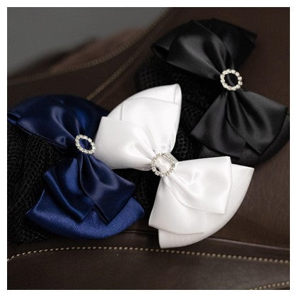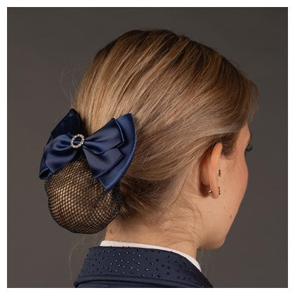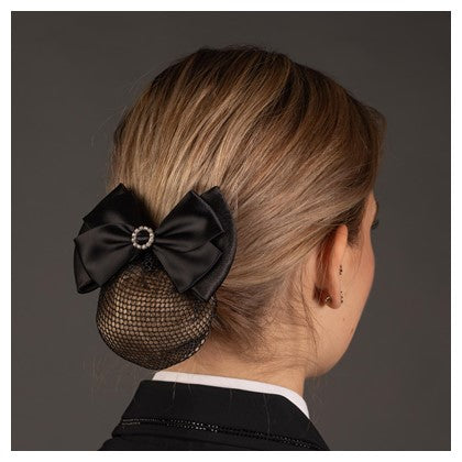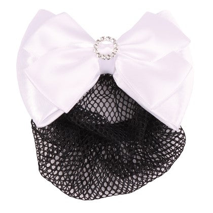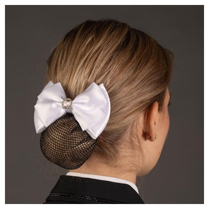 Luxuriöse Haarschleife mit Haarnetz. Mit silberfarbenen Kristallen verziert.