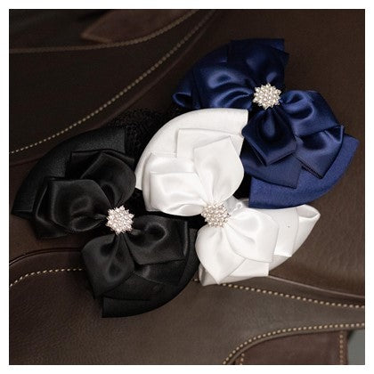 Luxuriöse Haarschleife mit Haarnetz. Mit silberfarbenen Kristallen verziert.