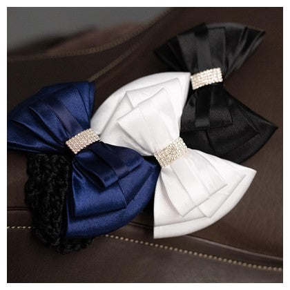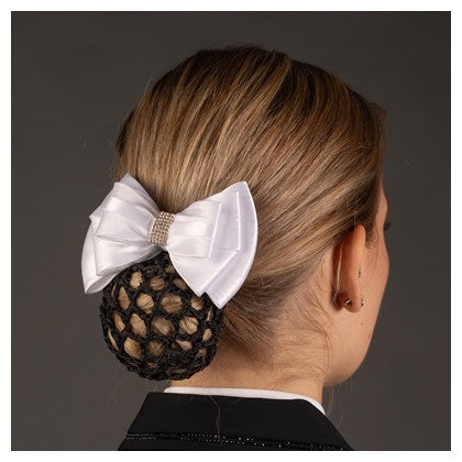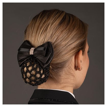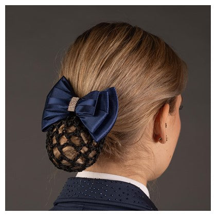 Luxuriöse Haarschleife mit Haarnetz. Verziert mit roségoldfarbenen Kristallen.