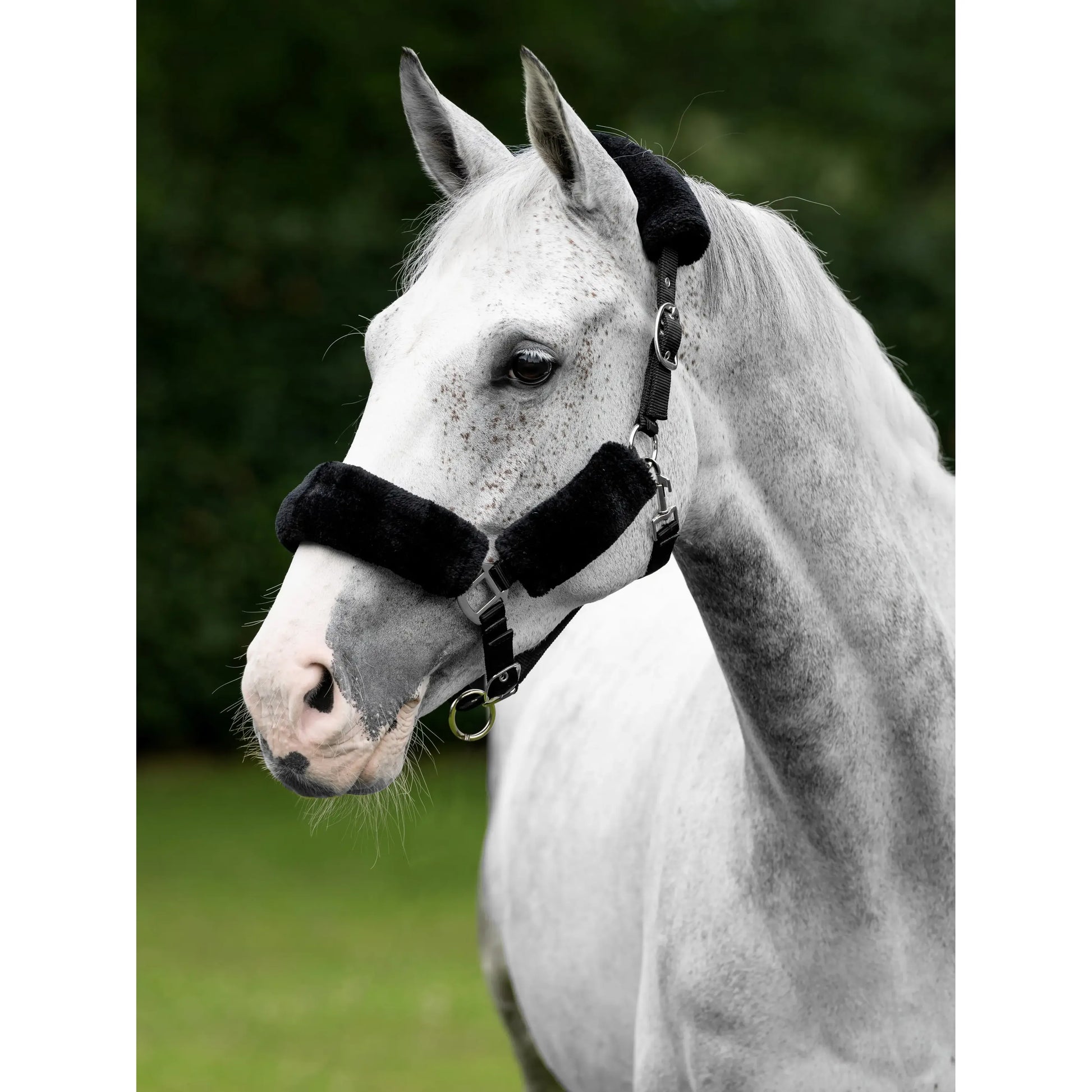 Ein weiches Halfter mit Fleeceeinsätzen hinter den Ohren und auf der Nase. Diese Fleeceeinsätze sorgen für eine gleichmäßige Druckverteilung und sind mit einer zusätzlichen Polsterung für höchstmöglichen Tragekomfort ausgestattet