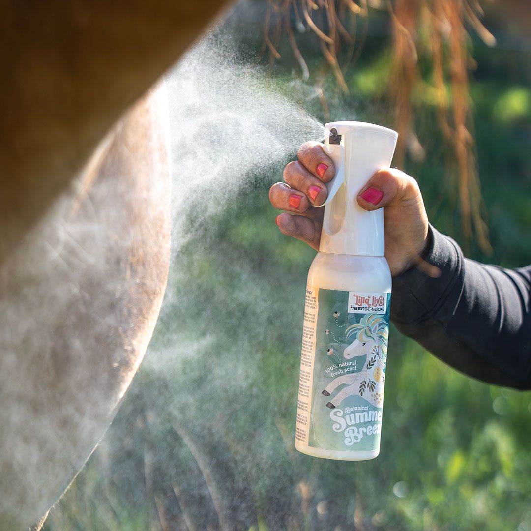 Der frische Duft von Kokosnuss, Zitrone, Minze, Lavendel, Thymian und Rosmarin berdeckt den Eigengeruch des Pferdes. Die pflegenden Öle nähren Haut und Fell. Intensiver, frischer Duft, hinterlässt keine Flecken. Auch für Pferde mit Ekzem geeignet.
