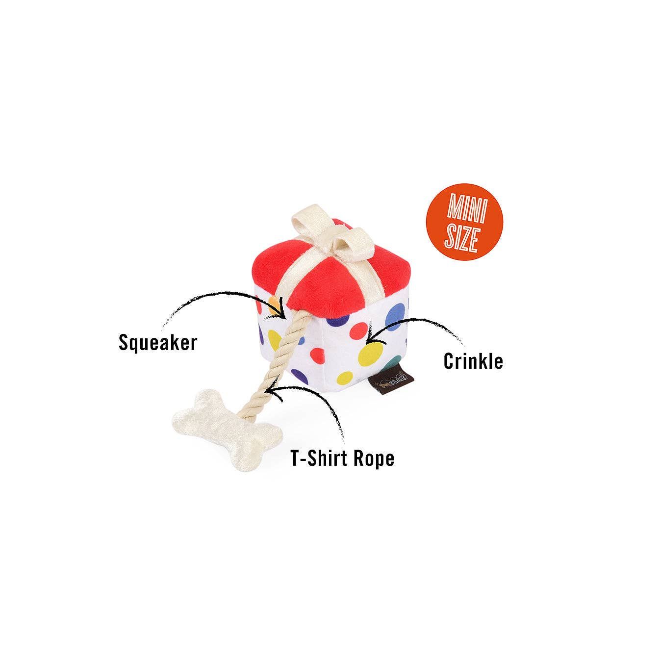 Dieses ultimative Geburtstagsgeschenk enthält einen charmanten Knochen, der an der Seite der Box befestigt ist, und verfügt über einen Quietscher und knisternden Stoff, um das Geräusch von Geschenkpapier nachzuahmen. Es ist das perfekte Geschenk, um Ihrem kleinen pelzigen Freund endlose Freude zu bereiten! Haben Sie einen kräftigen Hund, der mehr als Mini braucht? Schauen Sie sich hier das Spielzeug in voller Größe an. Es bietet die gleiche langlebige Konstruktion und endlosen Spaß, perfekt geeignet für größere Welpen.