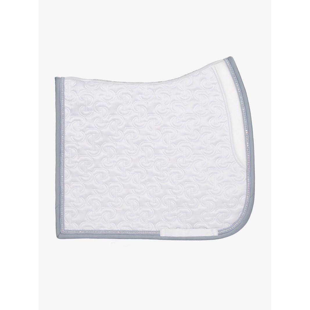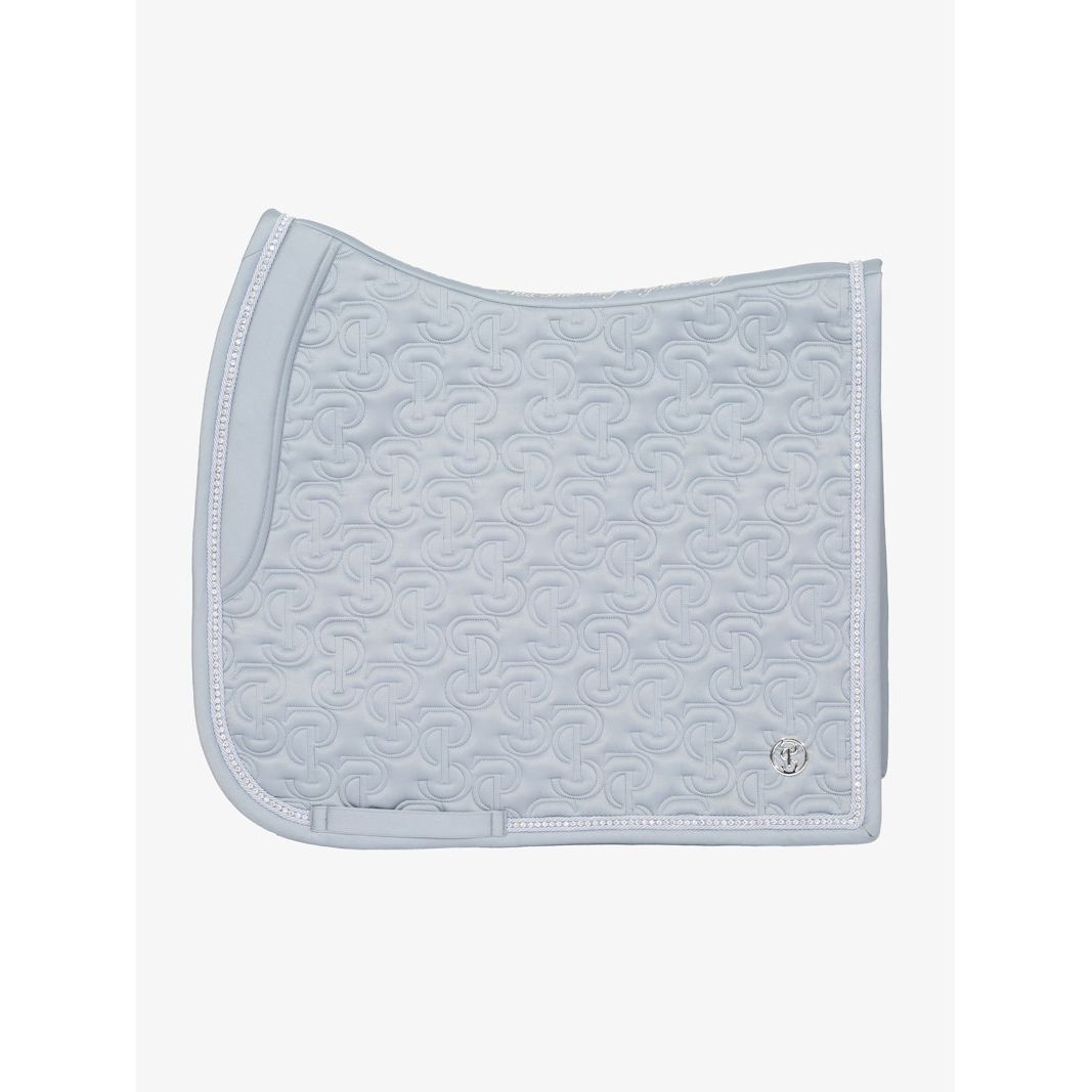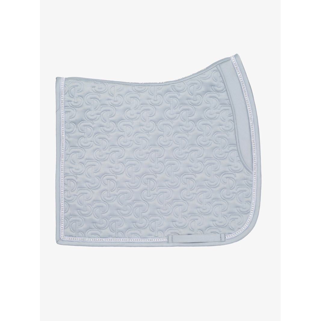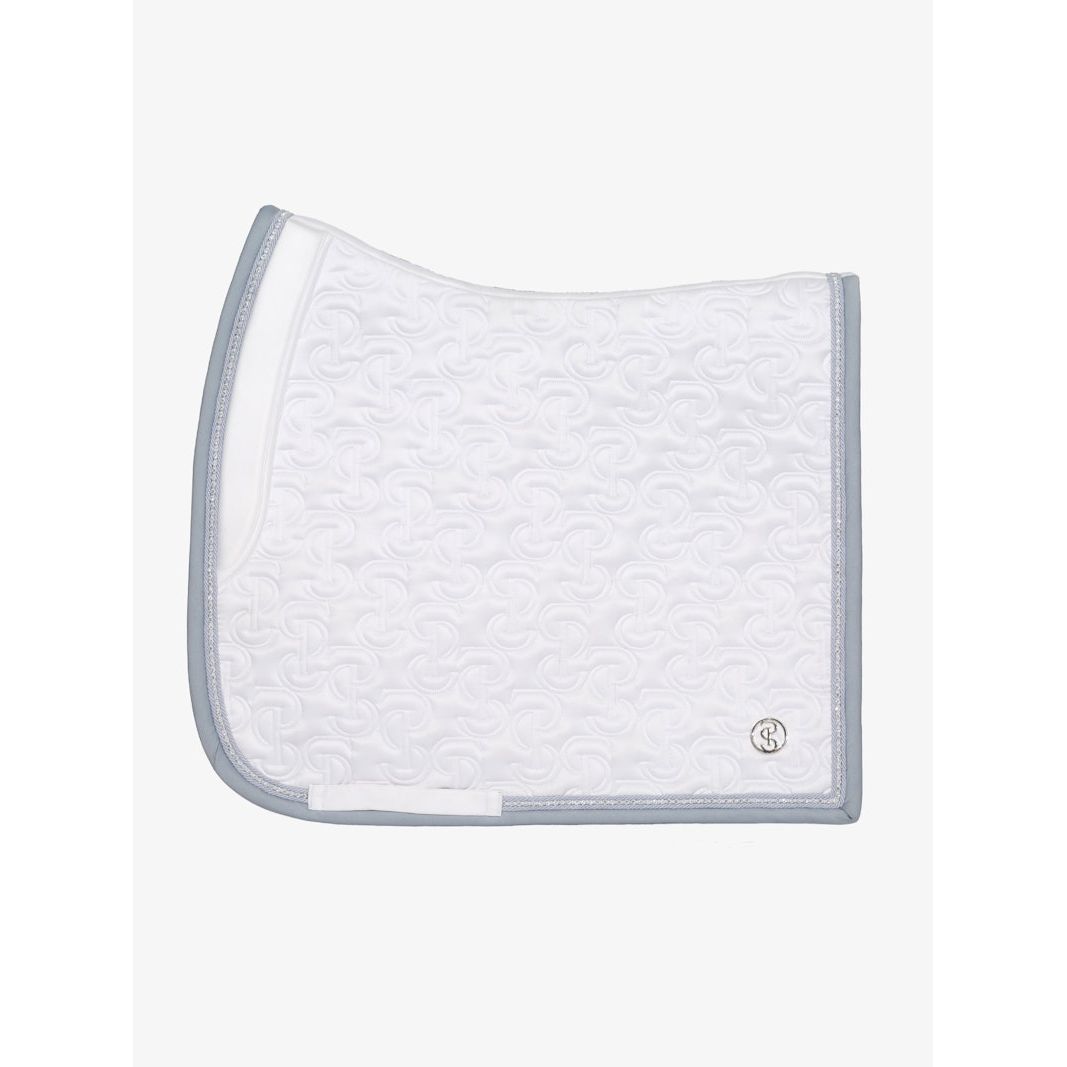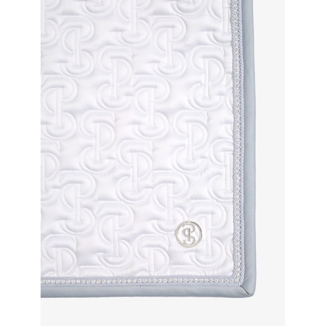 Anatomische Schabracke aus hochwertigem, glänzendem Satinmaterial mit einzigartigem Steppmuster und PS-Logo, das mit Kristallen besetzt ist.