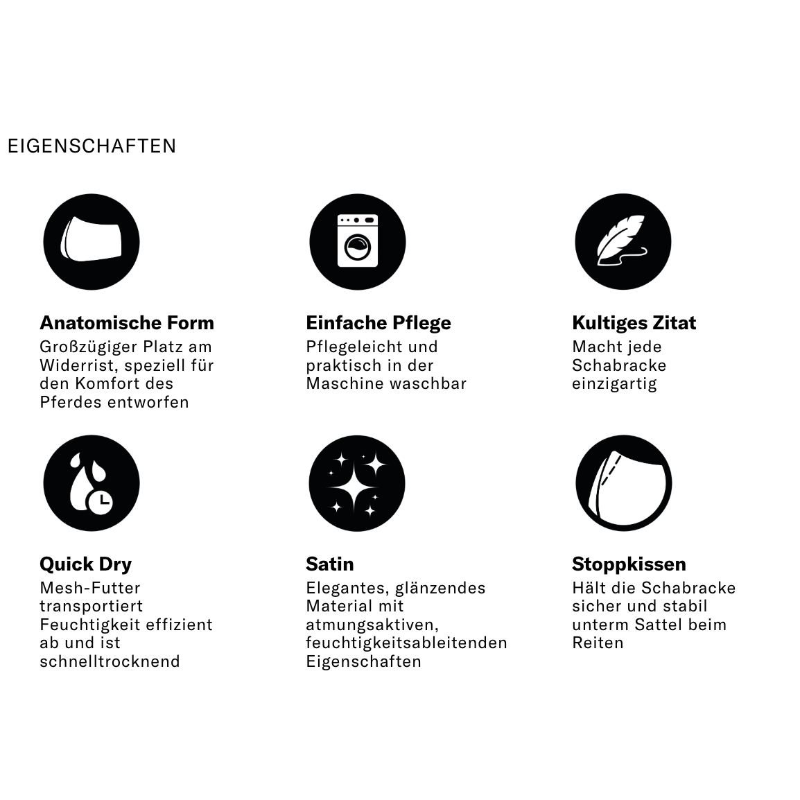 - Anatomisch geformte Schabracke für optimale Stoßdämpfung und Schutz vor Druckstellen, besonders im Widerristbereich