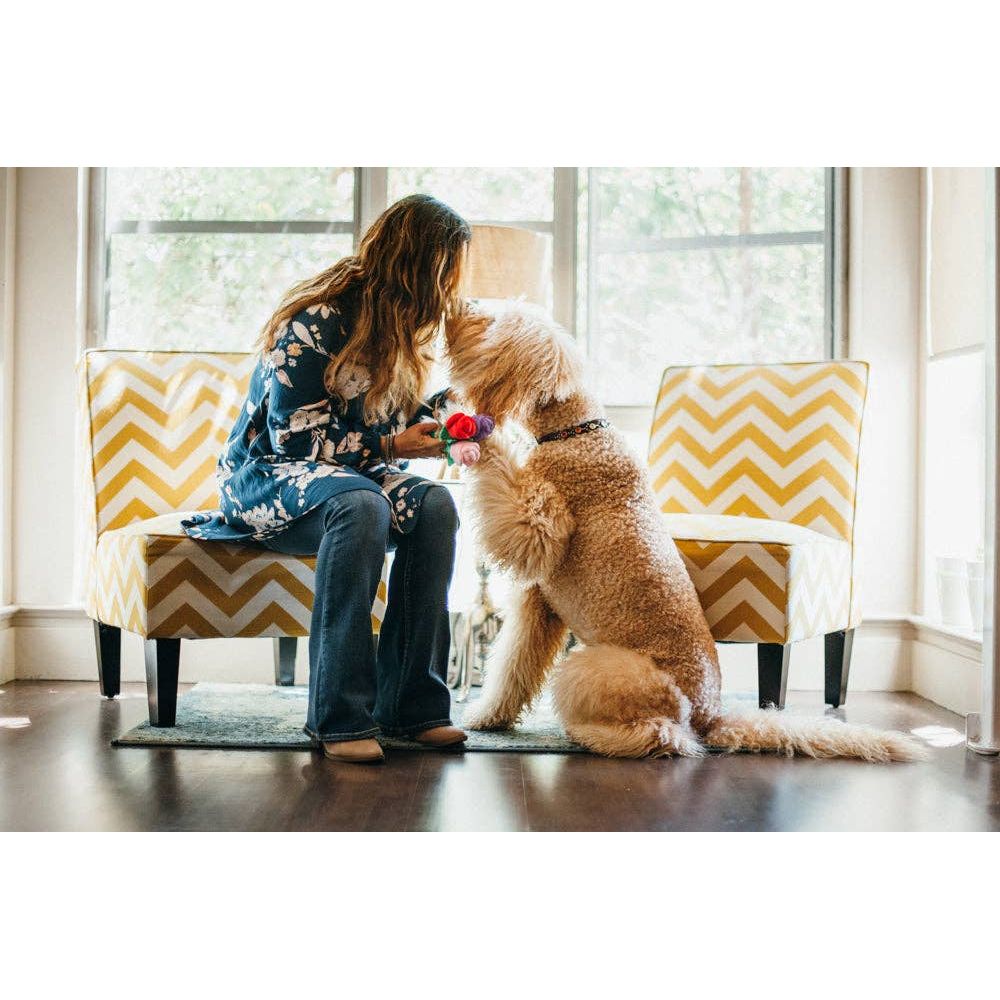 Verwöhnen Sie Ihren pelzigen Freund mit P.L.A.Y.s Puppy Love Rover’s Roses - dem Blumenstrauß, der für Ihren Welpen mit Freude erblüht! Dieses charmante Hundespielzeug verfügt über drei quietschende Blumen und bietet dreifachen Spaß für Ihren vierbeinigen Begleiter. Beobachten Sie, wie der Schwanz Ihres Hundes vor Freude wedelt, während er diese entzückenden Blüten erkundet und mit ihnen spielt!
