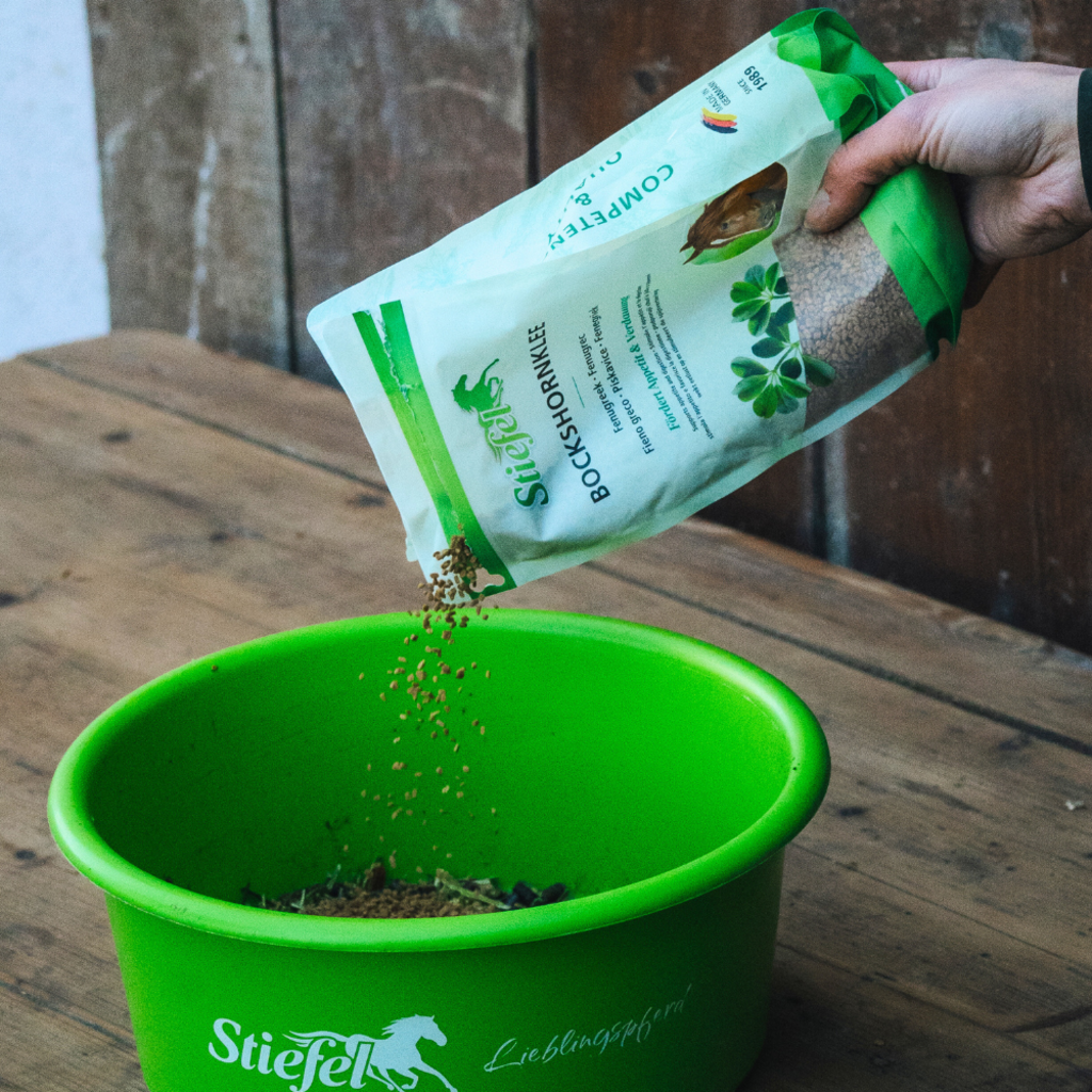 Stiefel Bockshornklee kann sich durch die natürlicherweise im Samen enthaltenen wertvollen B-Vitamine, Mineralstoffe und Aminosäuren auf natürlicher Basis positiv auf die Verdauung und den Stoffwechsel des Pferdes auswirken und somit die Futterverwertung verbessern. Durch seinen aromatischen Geschmack wird er von Pferden gerne gefressen.